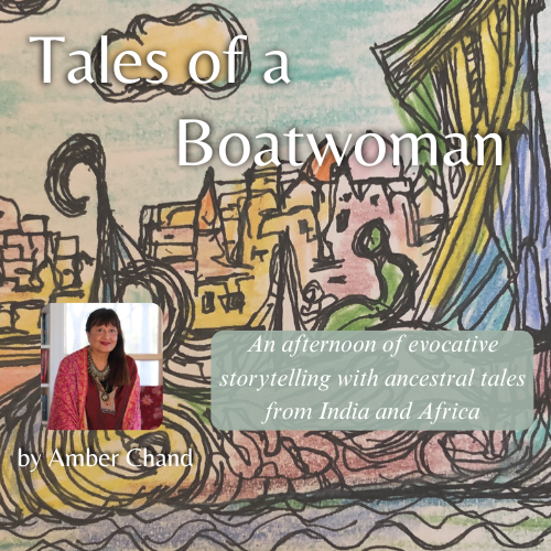 Join Amber Chand, global storyteller and writer as she takes you an evocative journey into the world of her ancestors in India and Africa through stories that will mesmerize and delight you. During her 75-minute performance, she will read excerpts from her forthcoming book, Tales of the Boatwoman, a book of ancestral stories and creative memoir, bringing extraordinary theatrics and skillful narrative to her performance.